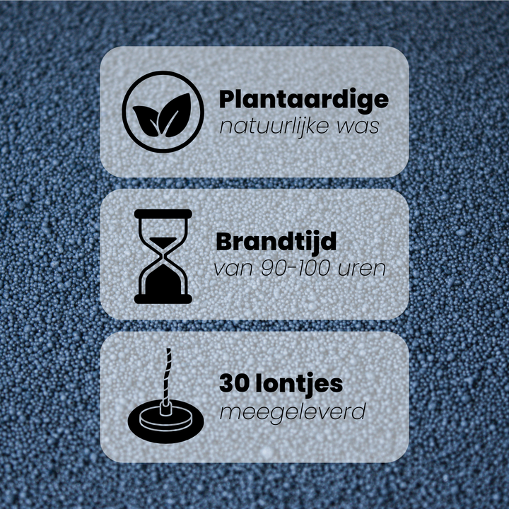 Elke verpakking bevat 400 gram kaarsenzand en bevat een doosje met 30 lonten, goed voor ongeveer 90 tot 100 branduren. Je vult simpelweg een glas of pot met het zand, plaatst een of meerdere lonten in het midden en steekt de kaars aan. Brandt de kaars op? Laat het zand afkoelen, ververs de lonten en verdeel het zand weer gelijk, zo heb je weer een gloednieuwe kaars. Daardoor is kaarsenzand een duurzaam en veelzijdig alternatief voor traditionele kaarsen.