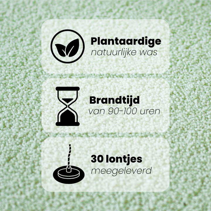 Elke verpakking bevat 400 gram kaarsenzand en bevat een doosje met 30 lonten, goed voor ongeveer 90 tot 100 branduren. Je vult simpelweg een glas of pot met het zand, plaatst een of meerdere lonten in het midden en steekt de kaars aan. Brandt de kaars op? Laat het zand afkoelen, ververs de lonten en verdeel het zand weer gelijk, zo heb je weer een gloednieuwe kaars. Daardoor is kaarsenzand een duurzaam en veelzijdig alternatief voor traditionele kaarsen.