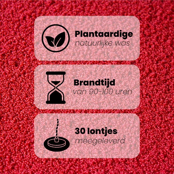 Rood kaarsenzand zorgt voor intensiteit, warmte en sfeer. Ideaal voor romantische avonden en feestdagen. Door de lange brandduur en het gebruiksgemak kun je steeds opnieuw variëren met geuren en accenten. Rood trekt de aandacht en brengt leven in elke ruimte.