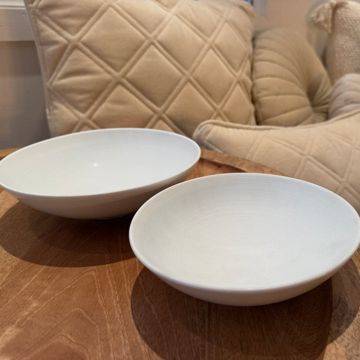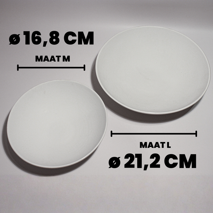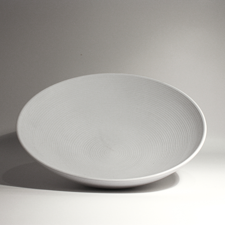 De Witte Bowl L is de grotere variant en geeft direct een warme, stijlvolle uitstraling aan elke kamer. De matte binnenzijde met subtiele strepen geeft karakter, terwijl de glanzende buitenzijde zorgt voor een luxe afwerking.